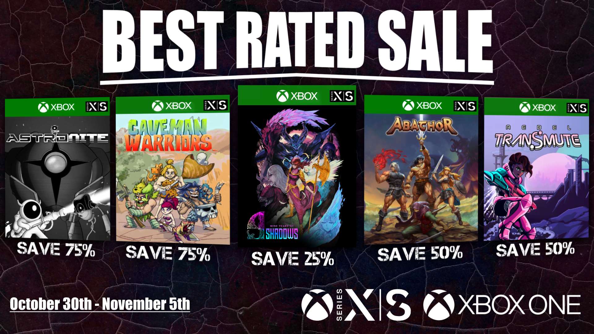 The Best Rated Sale has begun on Xbox Store! Save up to 75% on five amazing indie games, playable on Xbox Series X|S and Xbox One.