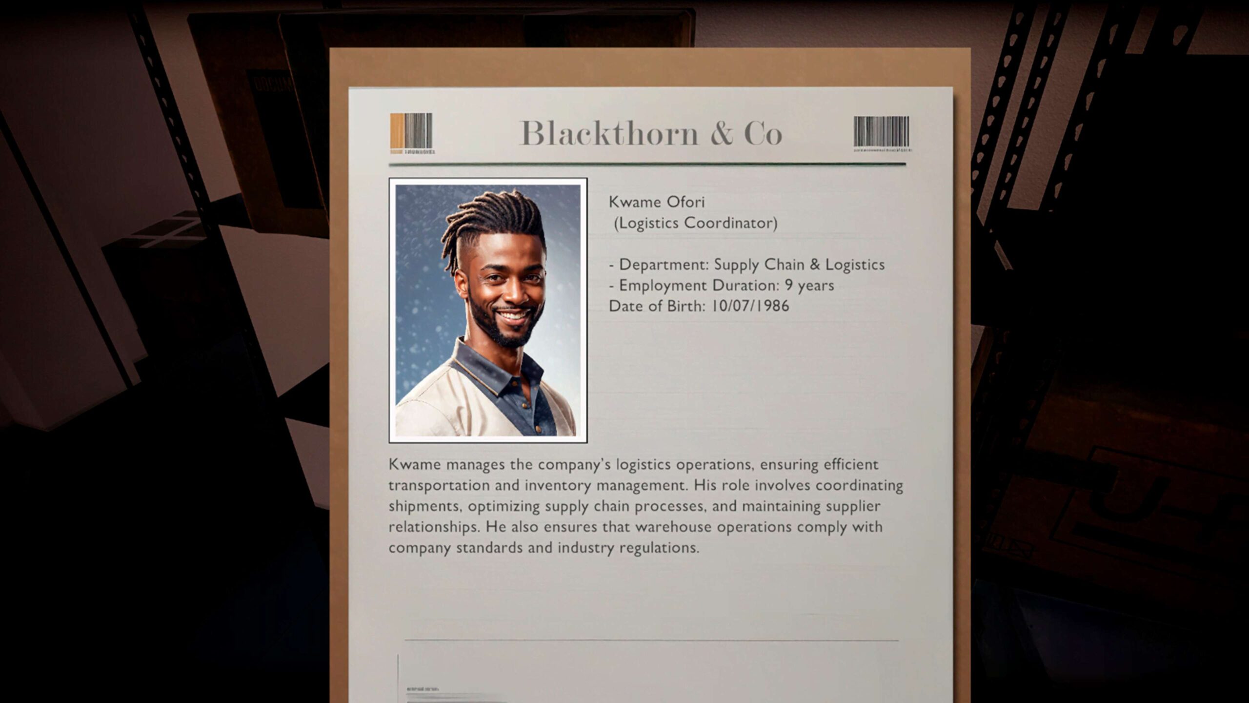 • Tense atmosphere: Blackthorn offices are a changing, disorienting environment where reality distorts, and every step reveals new threats and secrets.